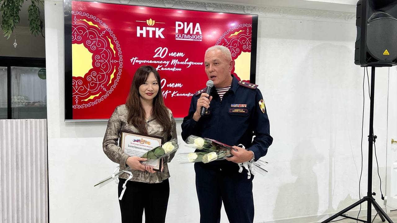 Помощник начальника территориального органа Росгвардии полковник полиции Сергей Кравцов от имени начальника Управления Росгвардии по Республике Калмыкия полковника полиции Нарана Настинова вручил благодарственное письмо и подарок коллективу НТК, выразил признательность главному редактору республиканского телеканала Гиляне Богаевой за плодотворное взаимодействие в информационном сопровождении служебно-боевой деятельности военнослужащих и сотрудников региональных подразделений ведомства.