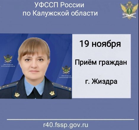 Приём граждан будет проводиться только по предварительной записи в отделении судебных приставов по Жизринскому и Хвастовичскому районам Управления с 10 до 13 часов. Адрес подразделения: г.Жиздра, ул. Садовая, д.5. Контактный номер отделения: 89105904731.