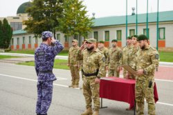 В торжественной обстановке военнослужащим по призыву, достойно исполнившим воинский долг, были вручены памятные видео и фотоматериалы об их службе в войсках правопорядка, почетные грамоты и благодарственные письма в адрес их родителей от командования полка.
