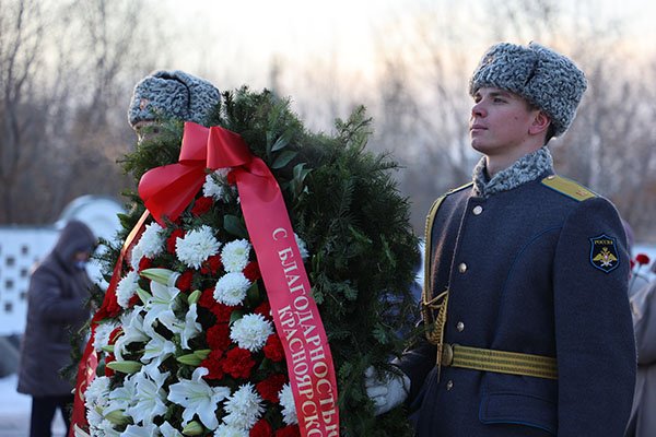 В День героев Отечества руководство и сотрудники ГУФСИН России по Красноярскому краю приняли участие в торжественной церемонии возложения венков и цветов к Вечному огню на площади у Мемориала Победы.