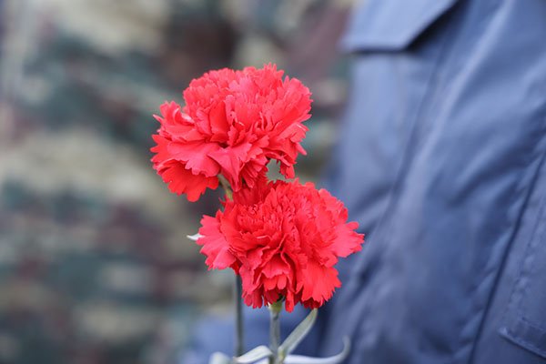После минуты молчания в честь героев Отечества, погибших при исполнении служебного и воинского долга, почетный караул произвел троекратный оружейный залп.