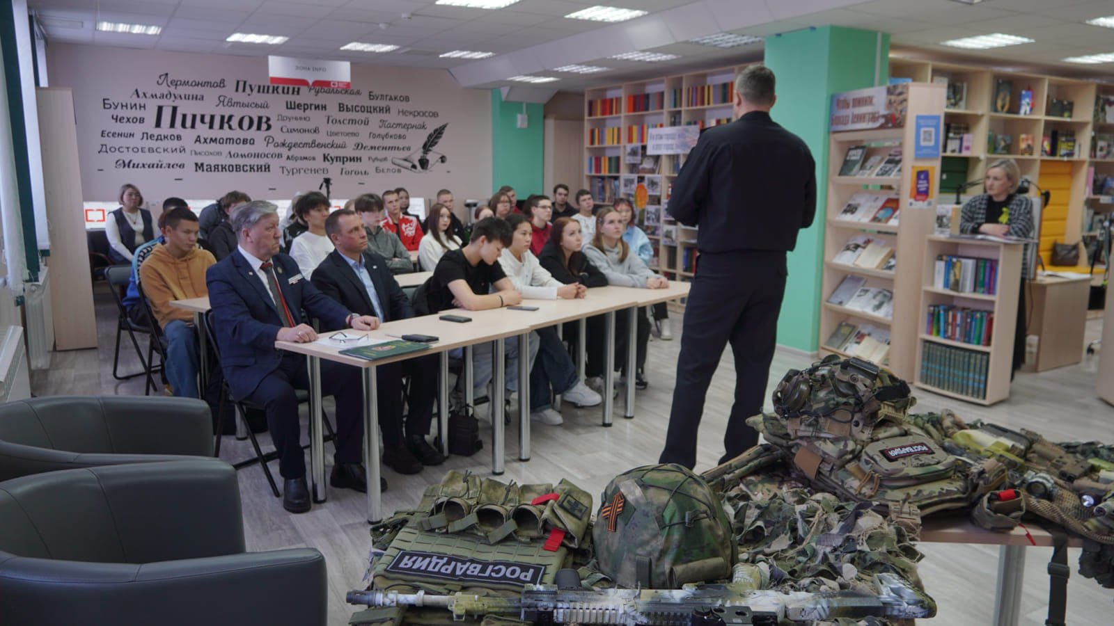 Как сообщили корреспонденту Информационного агентства МАНГАЗЕЯ в пресс-службе Управления Росгвардии по Ненецкому автономному округу, в День 82-летитя полного освобождения Ленинграда от фашистской блокады 27 января 1944 года в городе Нарьян-Маре провели патриотическое мероприятие «Блокада: нам жить и помнить». Интерактивной площадкой для диалога молодёжи со знатоками фронтовой литературы и офицерами войск правопорядка стала Ненецкая центральная библиотека имени Алексея Ильича Пичкова в городе Нарьян-Маре.Увлекательную экскурсию по страницам истории блокадного времени для студентов Нарьян-Марского социально-гуманитарного колледжа имени Ивана Петровича Выучейского провела главный библиотекарь отдела электронных ресурсов. С помощью видеороликов и отрывков из книг Мария Казакова рассказала о подвиге ленинградцев, сохранявших человечность в нечеловеческих условиях.