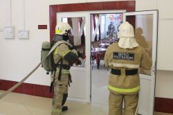Участники тренировки, которая проводилась в целях проверки готовности личного состава к действиям при возникновении пожара и совершенствования слаженности межведомственного взаимодействия, отработали алгоритм действий по эвакуации из загоревшегося здания и локализации очага возгорания.