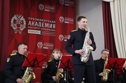 Музыканты в погонах под руководством военного дирижёра старшего лейтенанта Дмитрия Прасола поздравили студентов Дальневосточного института управления – филиала Российской академии народного хозяйства и государственной службы при Президенте Российской Федерации с наступающим Днём защитника Отечества и исполнили для них классические военные марши, а также популярные композиции, знакомые многим поколениям россиян.