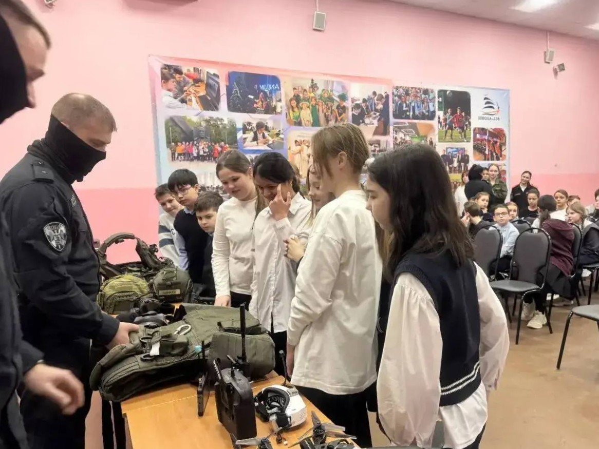 В начале встречи школьникам был продемонстрирован документальный фильм с кадрами учений и реальных операций, рассказывающий о сложной и ответственной работе по защите правопорядка и обеспечением безопасности граждан.