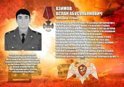 Указом Президента Российской Федерации за мужество, отвагу и самоотверженность, проявленные при исполнении воинского долга, младший сержант Азимов Аслан Абусупьянович награжден орденом Мужества (посмертно).