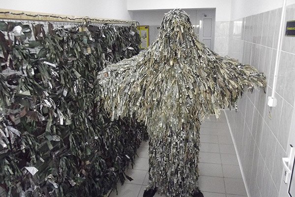 Когда из-за дачного сезона число добровольцев резко сократилось, женщина предложила руководству изолятора организовать работу внутри учреждения. Начальство идею поддержало. Для обучения пригласили волонтера из Введенского храма. Сначала осужденные осваивали простейшее плетение под названием «Листок», затем перешли к более сложной технике «G». Когда навыки закрепили, приступили к созданию маскировочных костюмов «Леший», которые предназначены для снайперов.