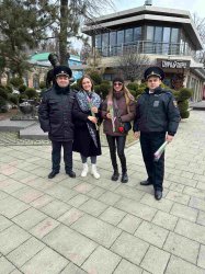 В Ростове-на-Дону транспортные полицейские поздравили женщин с наступающим 8 марта