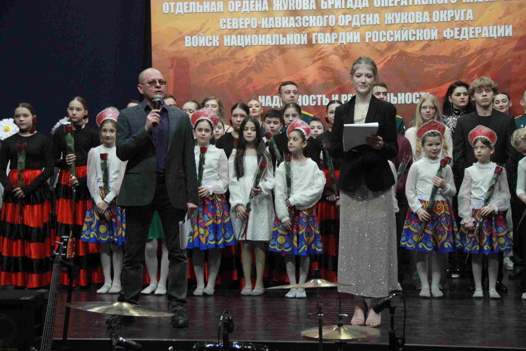 Кульминацией мероприятия стал праздничный концерт, подготовленный силами творческого коллектива гарнизонного дома офицеров соединения, с участием ансамбля песни и пляски Северо-Кавказского ордена Жукова округа Росгвардии, а также учащихся ведомственной школы.