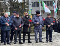 Как сообщили корреспонденту Информационного агентства МАНГАЗЕЯ, сотрудник вневедомственной охраны Управления Росгвардии по Кабардино-Балкарии майор полиции Асланбек Улимбашев и председатель Совета ветеранов тероргана полковник полиции в отставке Руслан Хужоков приняли участие в памятном митинге.У мемориала в Нальчике собрались сотни жителей Кабардино-Балкарии.