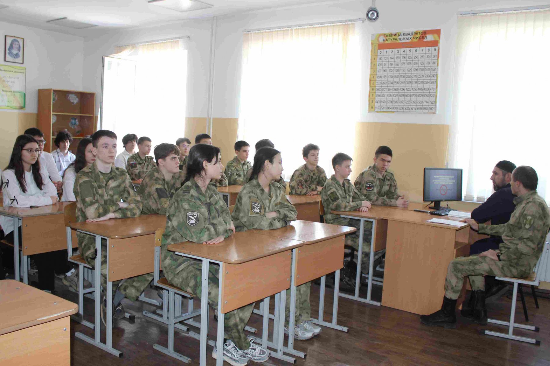 Как сообщили корреспонденту Информационного агентства МАНГАЗЕЯ, в ведомственной школе отдельной ордена Жукова бригады оперативного назначения Северо-Кавказского ордена Жукова округа Росгвардии состоялась беседа кадет и учащихся с Маратом Аскеровым – имамом мечети имени Героя Советского Союза Мавлида Висаитова.