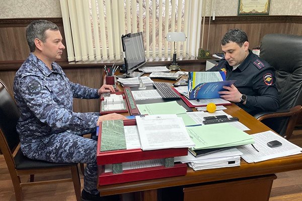Начальник ФКУ ИК-7 УФСИН России по Республике Дагестан подполковник внутренней службы Хаджимурад Саламов провел рабочую встречу с начальником Центра хозяйственного и сервисного обеспечения МВД по Республике Дагестан майором внутренней службы Исламом Абуганипаевым, сообщили корреспонденту Информационного агентства МАНГАЗЕЯ в пресс-службе УФСИН.