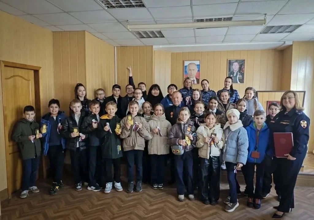 В завершение встречи учащимся вручили памятные значки с лентами триколора и сладкие подарки.