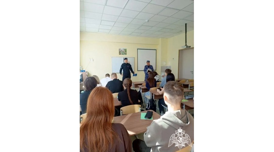 В рамках празднования 10-летия Росгвардии и 215-летия со дня основания войск правопорядка, офицер Управления Росгвардии по Ивановской области встретился с учащимися школы №6 города Приволжск.