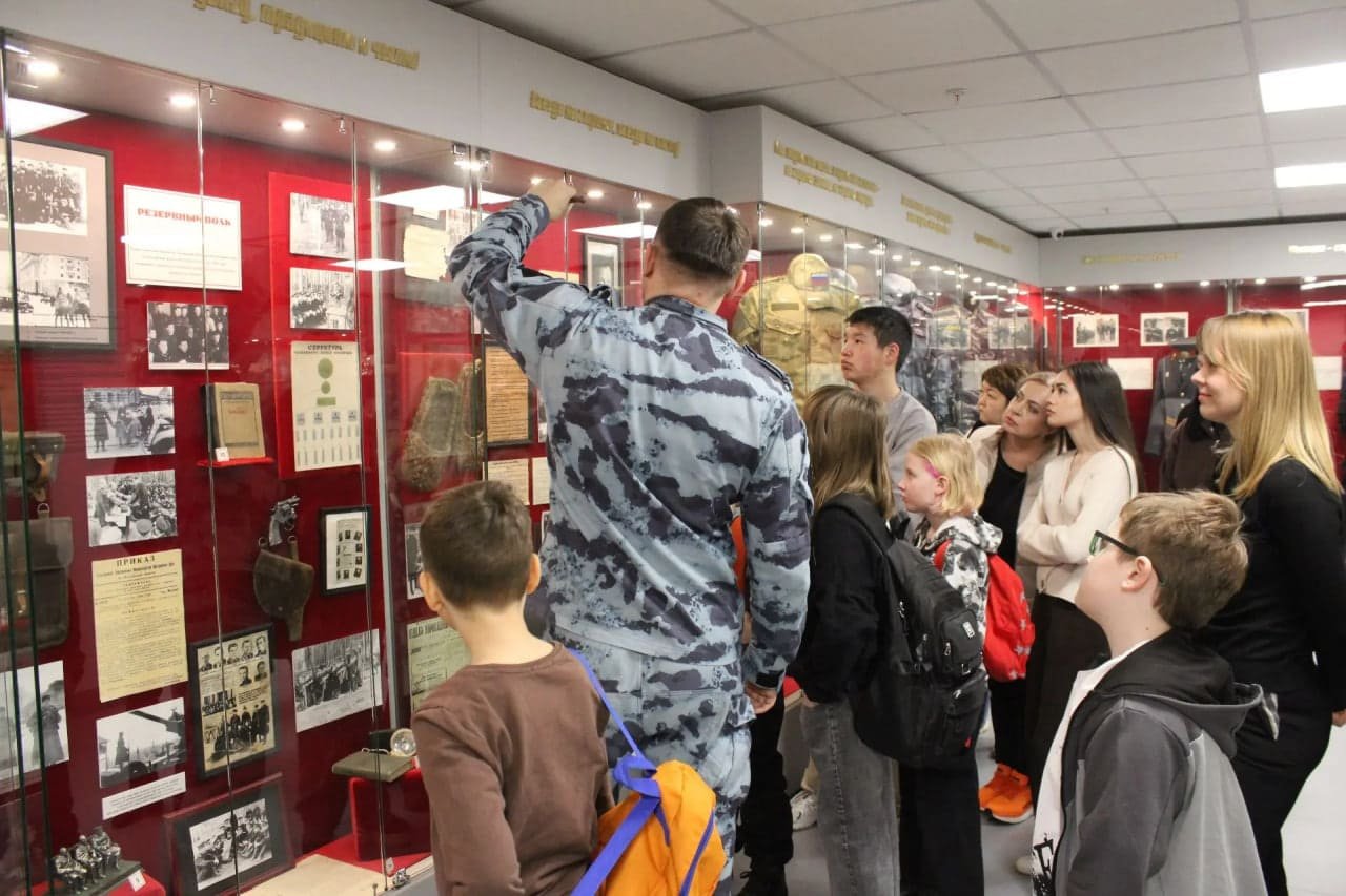 В продолжение встречи ребята посетили комнату истории ОМОН «Авангард», на экспозициях которой представлены фотографии, награды и личные вещи бойцов. На экскурсии ребята познакомились с ключевыми моментами истории отряда, узнали о сотрудниках, удостоенных звания Героя России, и о роли подразделения в важных спецоперациях.
