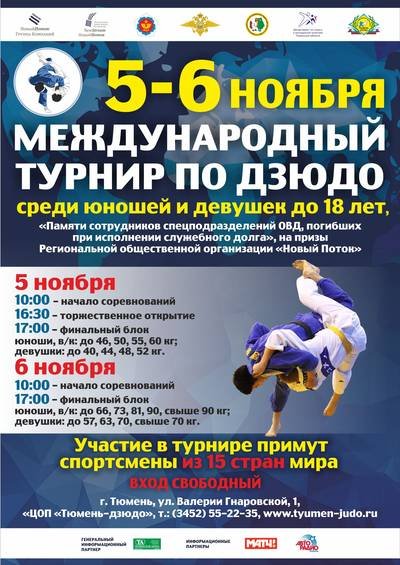 Мероприятие состоится по адресу: ул. В.Гнаровской, д. 1, «ЦОП «Тюмень-дзюдо», тел. (3452) 55-22-35, www.tyumen-judo.ru.