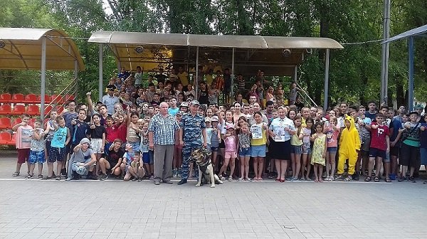 Дети внимательно слушали выступающих и отвечали на их вопросы. После «теоретической части», полицейский-кинолог Астраханского ЛО МВД России на транспорте старший сержант полиции Куаныш Асылбеков со своим питомцем – служебно-розыскной собакой Томасом показали детям и «практическую часть». Сначала сотрудник полиции рассказал о своей профессии, о некоторых моментах дрессуры животного, о необходимости установления контакта и доверительных отношений с четырехлапым полицейским. Во время рассказа Томас находился около своего наставника, а когда пришло время показать свои умения, он играючи выполнил все команды полицейского. В особый восторг детей привело умение Томаса выполнять команды, подаваемые при помощи жестов. Подавая команды питомцу, Куаныш Асылбеков рассказал и наглядно продемонстрировал подросткам простейшие приемы обучения собак. Дети задали множество вопросов об уходе и дрессуре собак, и получили полные, зачастую с наглядной демонстрацией, ответы.