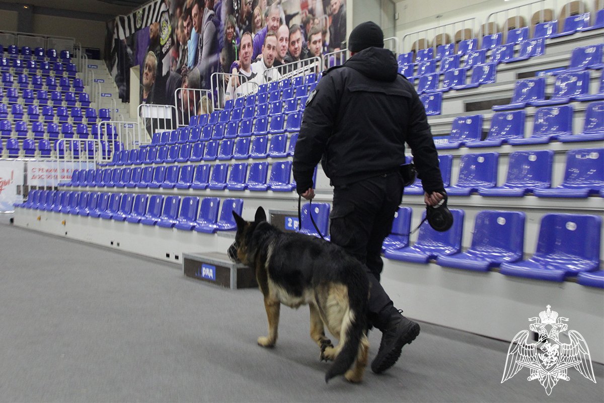 Перед началом встреч специалисты инженерно-досмотровой группы ОМОН с использованием специальных средств и служебных собак провели антитеррористические обследования спортивного объекта и прилегающей к нему территории.