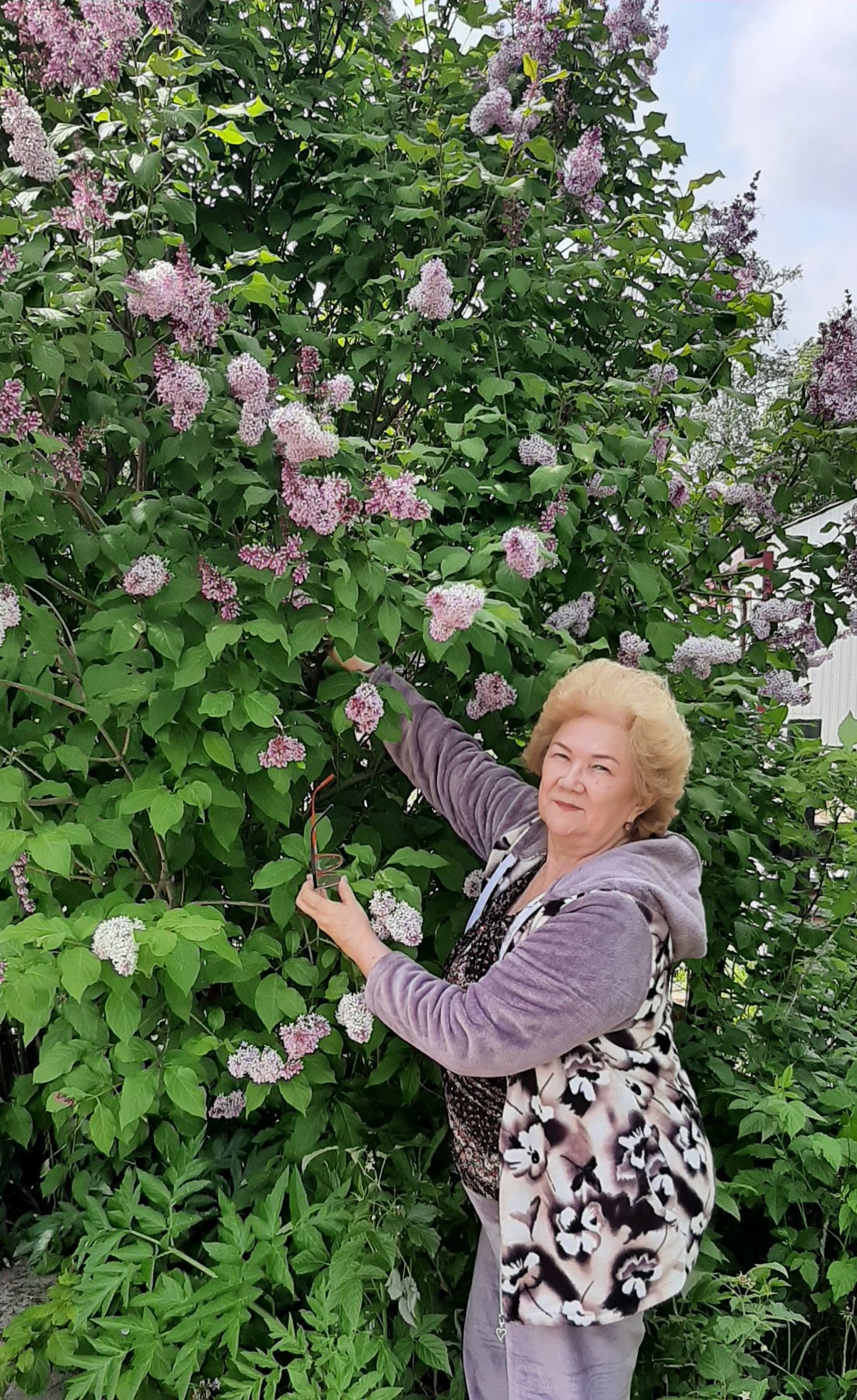 Тишина дачи в Нижневартовске. Надежда Константиновна Таран среди знакомых с детства запахов земли и цветов. И главный аккорд весны – душистая сирень Кузьмы. Тот самый куст, что помнит шаги её матери-писательницы и руки деда, подарившего семье этот островок зелени и памяти. Фото из семейного архива
