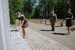 Как сообщили корреспонденту информагентства МАНГАЗЕЯ в ведомстве, военнослужащие пришли к мемориалу «Скорбящая мать» городского мемориального кладбища, где похоронены участники Великой отечественной войны. Присутствующие почтили память павших красноармейцев минутой молчания и возложили цветы к вечному огню у монумента.