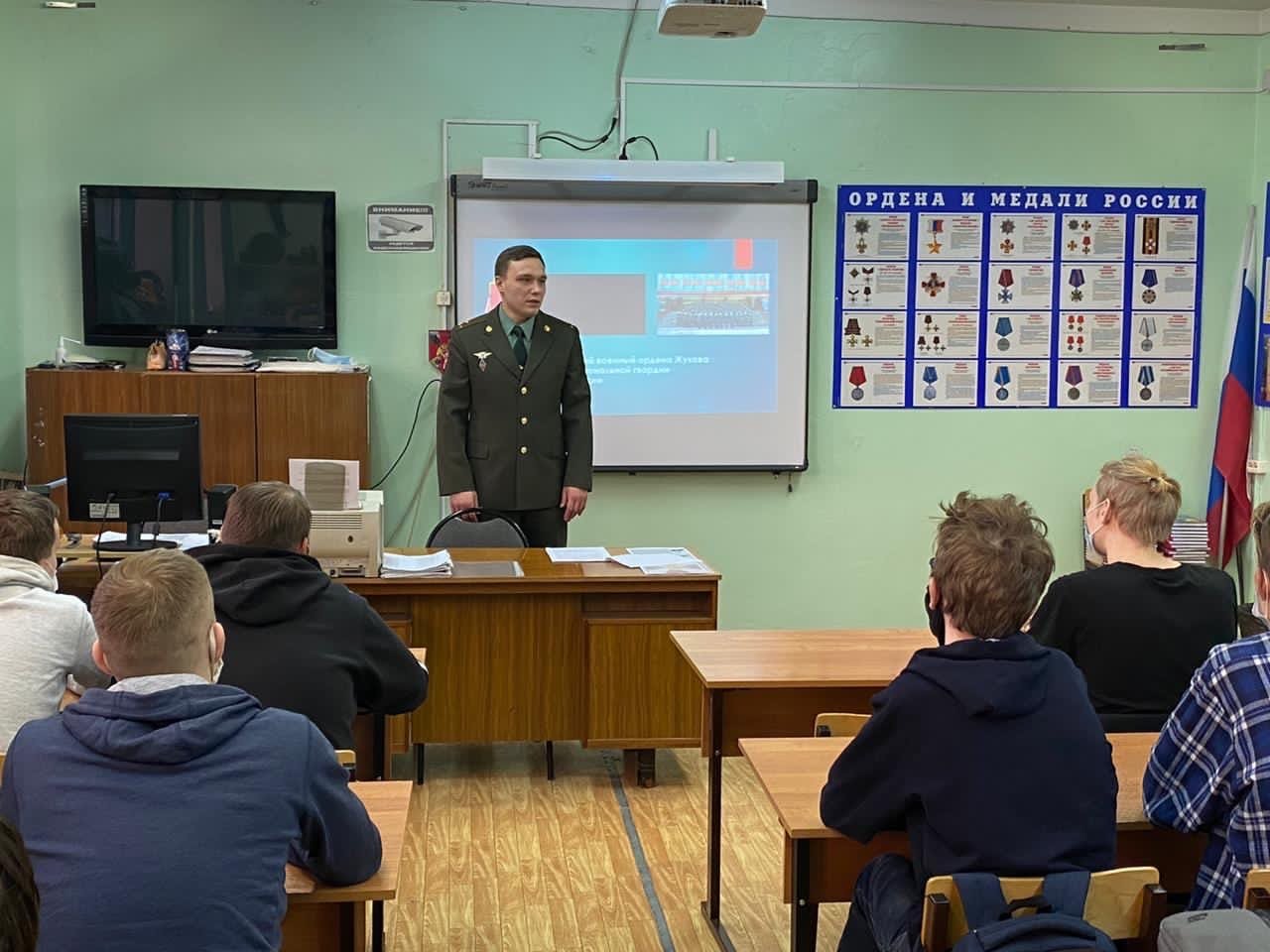 Офицер рассказал о Санкт-Петербургском военном ордена Жукова институте войск национальной гвардии Российской Федерации, его истории и известных выпускниках. Старший лейтенант Иван Витюк, который сам является выпускником факультета морально-психологического обеспечения СПВИ Росгвардии, подробно проинформировал собравшихся о порядке поступления и критериях отбора кандидатов, об учебной деятельности и быте курсантов.