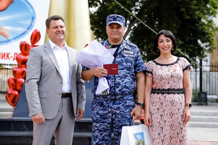 Как сообщили корреспонденту ИА"МАНГАЗЕЯ", накануне в Оренбурге, на центральной улице города, у памятника «Спасибо, донор!» состоялась церемония награждения знаком Почетный донор России.Прапорщик полиции Рустам Сулейманов — командир отделения батальона полиции вневедомственной охраны области получил знак, подтверждающий почетное звание, из рук министра здравоохранения Оренбургской области Татьяны Савиновой.