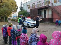 В Новгородской области дорожные полицейские и общественники в рамках акции «Каждый ребенок должен знать» пришли в гости к дошкольникам