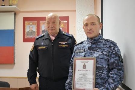 Руководитель поблагодарил личный состав за добросовестное исполнение должностных обязанностей и вручил отличившимся росгвардейцам благодарности и погоны к очередным специальным званиям.