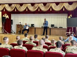 Военнослужащие владикавказского соединения провели День открытых дверей для ребят из класса имени военнослужащего Росгвардии сержанта Аслана Мухтарова школы № 46. В ходе мероприятия школьникам показали технику и вооружение росгвардейцев, продемонстрировали работу кинологов ведомства. Затем в клубе воинской части состоялся концерт военного оркестра Пограничного Управления регионального ФСБ под руководством концертмейстера старшего прапорщика Сергея Трещина, исполнившего патриотические и современные композиции.