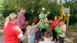 Как сообщили корреспонденту Информационного агентства МАНГАЗЕЯ, 27 августа волонтерская группа «Счастливый Нижний Новгород» провела праздник «Арбузный переполох» в детском реабилитационном центре «Солнышко». Ребята от 3 до 18 лет отгадывали викторину, соревновались, танцевали, мастерили "арбузные значки".В самом начале мероприятия ребята узнали, что люди ели арбузы еще в Египте 4000 лет назад. А привезли их в Россию около 400 лет назад и ели, предварительно вымачивая ее в сахарном сиропе.