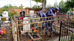 Все присутствующие почтили память павших минутой молчания. После росгвардейцы совместно с активистам акции провели работу по облагораживанию могил солдат Великой Отечественной войны. Они убрали листву, вырубили дикую поросль и обновили таблички.