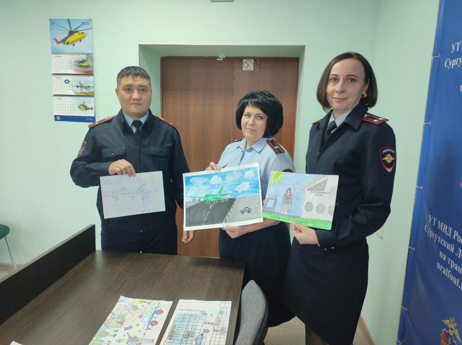 В Сургуте дети сотрудников транспортной полиции нарисовали своих родителей