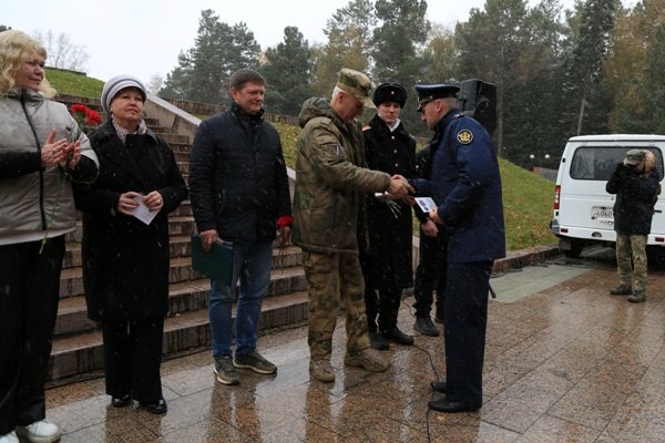Как сообщили корреспонденту Информационного агентства МАНГАЗЕЯ, председатель Томской городской общественной организации ветеранов войны, труда, вооружённых сил и правоохранительных органов Николай Мозель вручил медали «За помощь участникам СВО» сотрудникам отдела по конвоированию УФСИН России по Томской области Владиславу Першину и Александру Кудинову. Они в течение долгого времени совместно с коллегами и другими волонтерами активно участвовали в организации и проведении работы по сбору и отправке гуманитарной помощи в зону СВО.Торжественное награждение состоялось 4 октября на митинге в Лагерном саду, посвящённом закрытию регионального этапа всероссийской акции «Вахта памяти – 2025». После вручения медалей сотрудники УФСИН вместе с остальными участниками мероприятия почтили память павших героев минутой молчания и возложили цветы к Мемориалу боевой и трудовой Славы.
