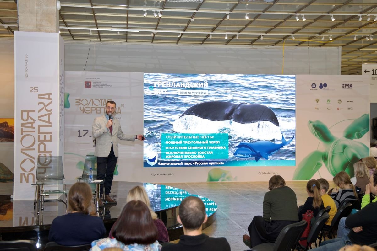 Директор национального парка «Русская Арктика» (Архангельская область) Александр Кирилов познакомил присутствующих с редкими видами животных нацпарка – белым медведем, северным оленем, атлантическим моржом, нарвалом, гренландским китом, финвалом (сельдяным китом), горбатым китом, белой чайкой, атлантической черной казаркой, белоклювой гагарой, а также с редкими арктическими растениями – камнеломкой супротивнолистной и камнеломкой снежной.