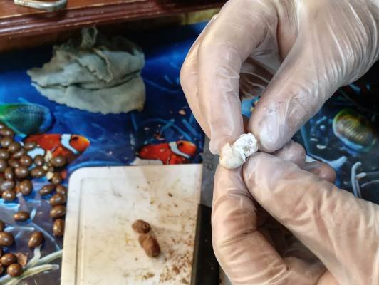 В некоторых конфетах вместо арахиса были маленькие свертки с запрещенным веществом. В бутылке с маслом «Олейна» вещество находилось в растворенном виде. По заключению экспертов ЭКЦ регионального УМВД это были 0,63 грамма героина и 0,97 граммов мефедрона.