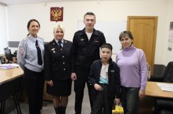 Накануне мальчик вместе с мамой посетил Южно-Уральское линейное управление МВД России на транспорте.