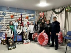 «Полицейский Дед Мороз», Снегурочка и сотрудники ОПДН поздравили мальчиков и девочек с наступающим Новым годом и Рождеством, пожелали исполнения самых заветных желаний. Каждому воспитаннику Центра стражи порядка вручили сладкий подарок.