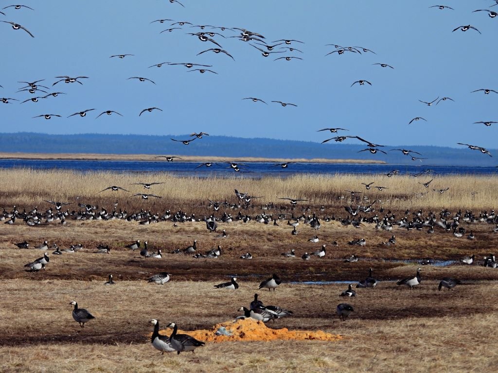 Кроме того, специалистами были зафиксированы необычные паттерны миграции птиц: белощёкая казарка начала перелёт 19 мая (обычно 13–17 мая), пик миграции пришёлся на 22 мая (8 860 особей за 2 часа). Впервые за 8 лет миграция прошла одной волной. Кроме того, в сентябре–октябре было отмечено 68 особей краснокнижной белой лазоревки — за 15 лет в Архангельской области видели лишь несколько особей данного вида.