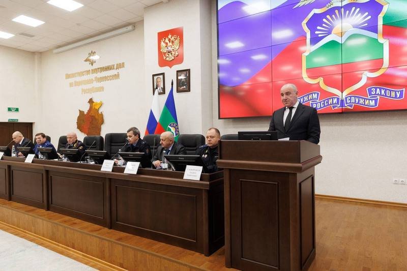 В МВД по Карачаево-Черкесской Республике подвели итоги работы ведомства за 2025 год. В мероприятии приняли участие Глава Карачаево-Черкесской Республики Рашид Темрезов, руководители Аппарата Полномочного представителя Президента РФ в КЧР, Верховного суда, Управления ФСБ РФ, Пограничного управления, Прокуратуры, Росгвардии, ОФСИН.Открывая совещание, министр внутренних дел по Карачаево-Черкесии генерал-майор полиции Владимир Нефедов заявил, что на коллегии будут разработаны меры для улучшения работы по обеспечению безопасности и комфорта жителей и гостей республики.