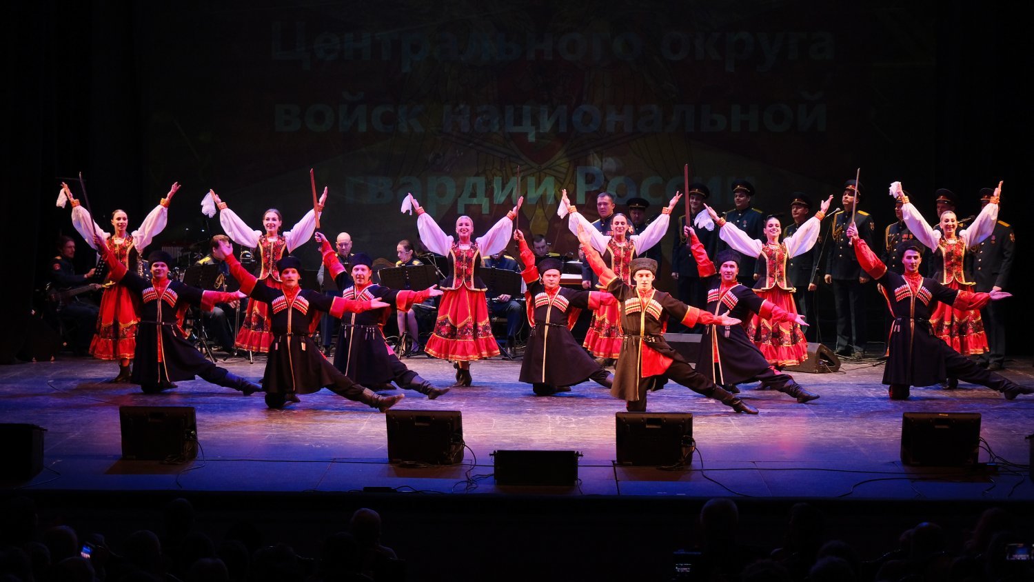 Ансамбль песни и пляски Центрального округа Росгвардии под руководством майора Сергея Соловьева выступил в Тамбовском драматическом театре города Тамбова с концертом, приуроченным к празднованию 10-летия Росгвардии и 215-летия войск правопорядка.
