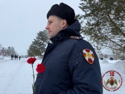 Росгвардейцы и все присутствующие почтили память погибших военнослужащих минутой молчания и возложили цветы к мемориалу.