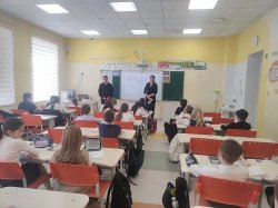 Стражи порядка обсудили с ребятами правила безопасности на железнодорожных путях, а также предупредили о возможных рисках, связанных с транспортной безопасностью. В завершении мероприятия сотрудники показали тематический видеофильм и разместили информацию в уголках безопасности школы.