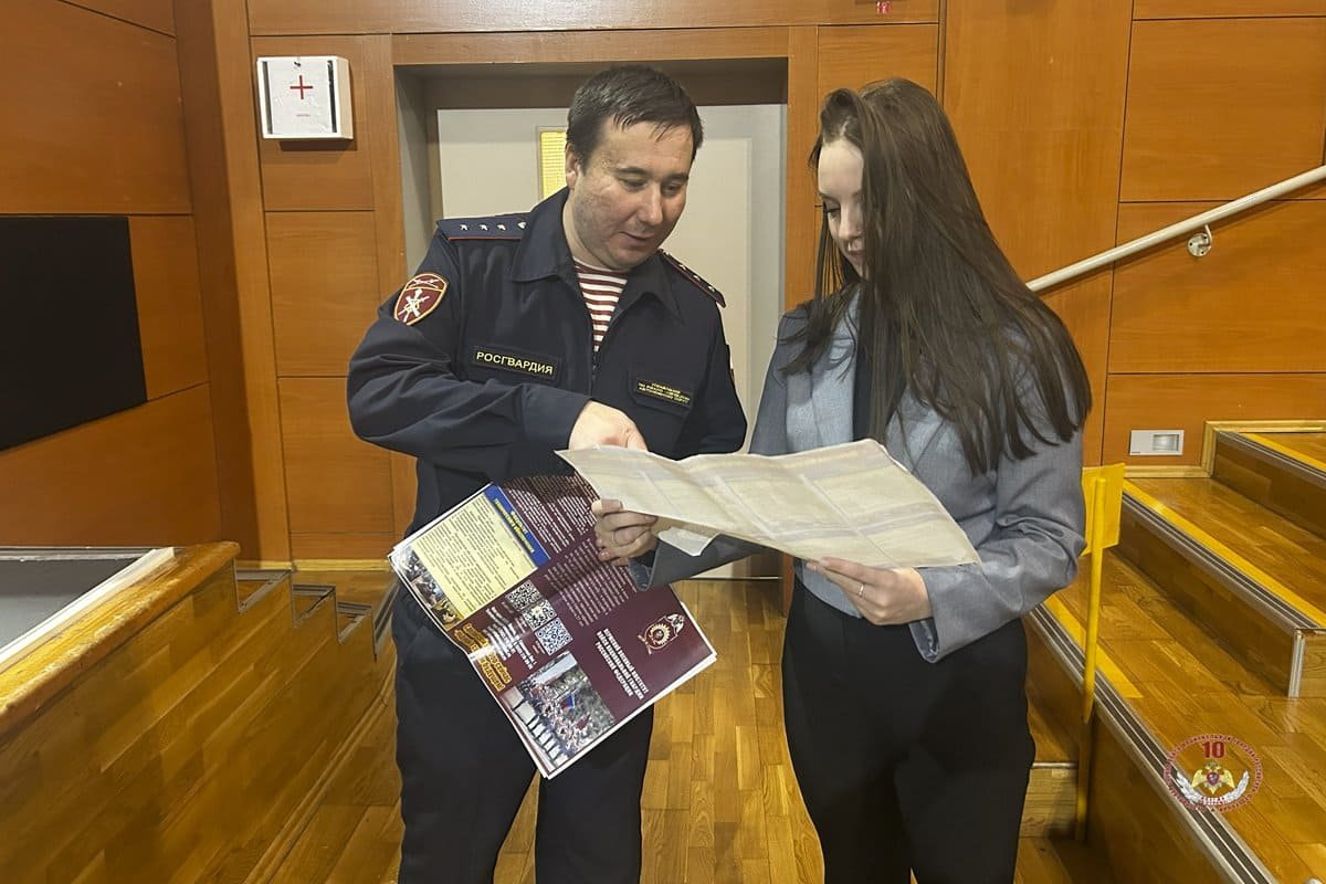 В завершение мероприятия представители ведомства вручили студентам информационные буклеты и пригласили их на День открытых дверей, который пройдет в территориальном управлении в преддверии юбилея Росгвардии.